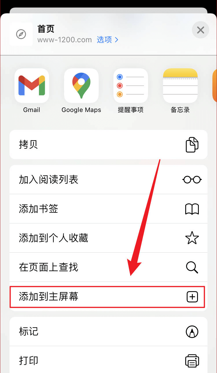 添加到主屏幕